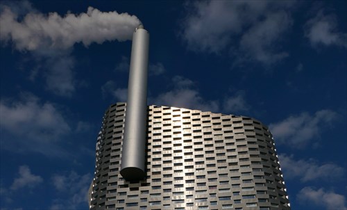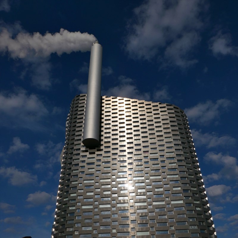 写真はコペン=ヒルというゴミ焼却場。発電と給湯を行っている。コペンハーゲンは2030年までに脱炭素。現在、コペンハーゲンは再生可能エネルギー70%以上。