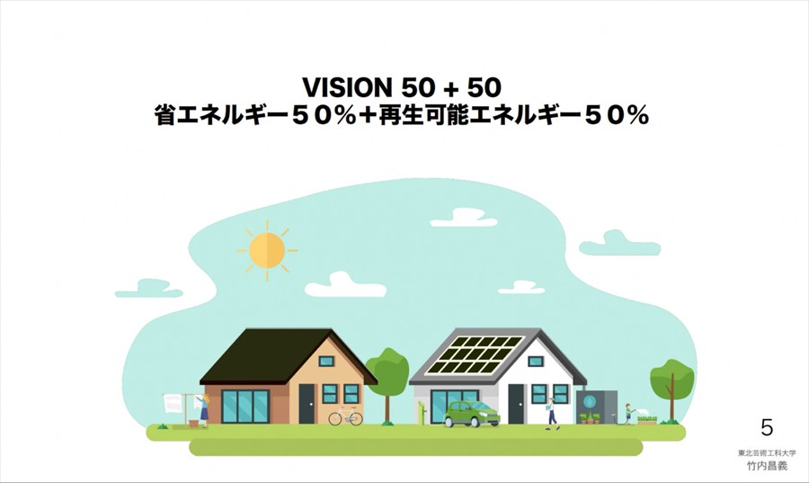 全56回生の竹内です。高校卒業後、建築の道に進み、現在「みかんぐみ」という設計事務所を友人と経営しております。と同時に、山形市にある東北芸術工科大学にて建築を教えています。「脱炭素社会に向けての家づくり、健康づくり」というテーマでお話しさせていただきました。当日参加された方はお疲れ様でした。質問もたくさん頂き、関心の高さを感じました。ここで要点をまとめつつ、スライドも何枚か共有したいと思います。