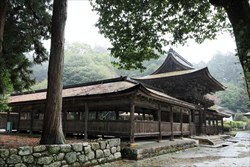 次の訪問は甲賀の総社、油日神社へ向かう。小田原出身の宮司が土砂降りの中、丁寧に油日神社の境内や甲賀歴史民俗資料館の文化財を説明された。油日大神は万有始動の根元神として繁栄の大本といわれ、楼門には酒樽ならぬ油の缶が積まれている。多くの食用油会社などの参拝が伺える。拝殿を囲むような東西の廻廊では、甲賀の様々な決め事が談じられた。どの屋根も檜皮葺だが、古落葉も載って些かうらぶれた感じ。宮司が長い参道を駐車場まで来て、バスが発つまで見送ってくれた。