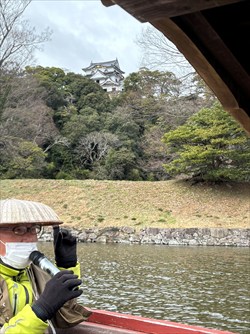 結構な坂道を登って城に至ったが、健脚の何人かは更にその天守閣まで上り詰めたようだ。城を下って大名庭園である玄宮園を散策した。水不足が続いたために池の水位が低い所もあったが、見どころは多い。更に、彦根城・屋形船に乗る。井伊の殿もこうした屋形船を使ったと云う。お濠を巡りながら、城門への低い橋を抜ける時は船頭が腰を屈めながら、橋桁の間を上手に潜って進める。船頭が彦根城の歴史などを語って楽しい小一時間だった。