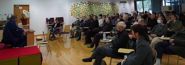 琴龍師匠は前回講演時の真っ赤な着物・羽織姿とは対照的な濃紺の着物・羽織姿で登壇されました。